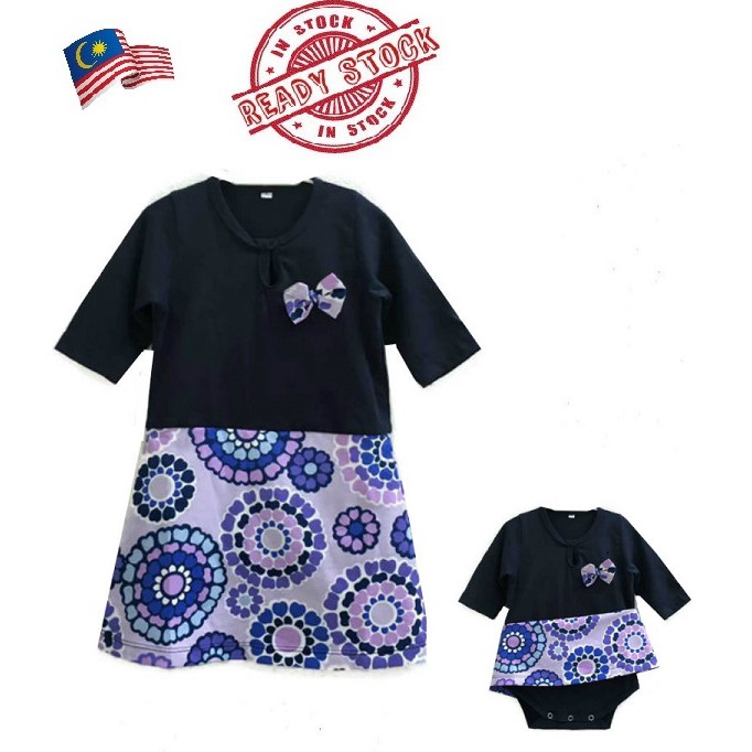 R016 Baby Girl Romper Baju Kurung Fashion Raya Cotton Ootd Navy Blue Shopee Malaysia